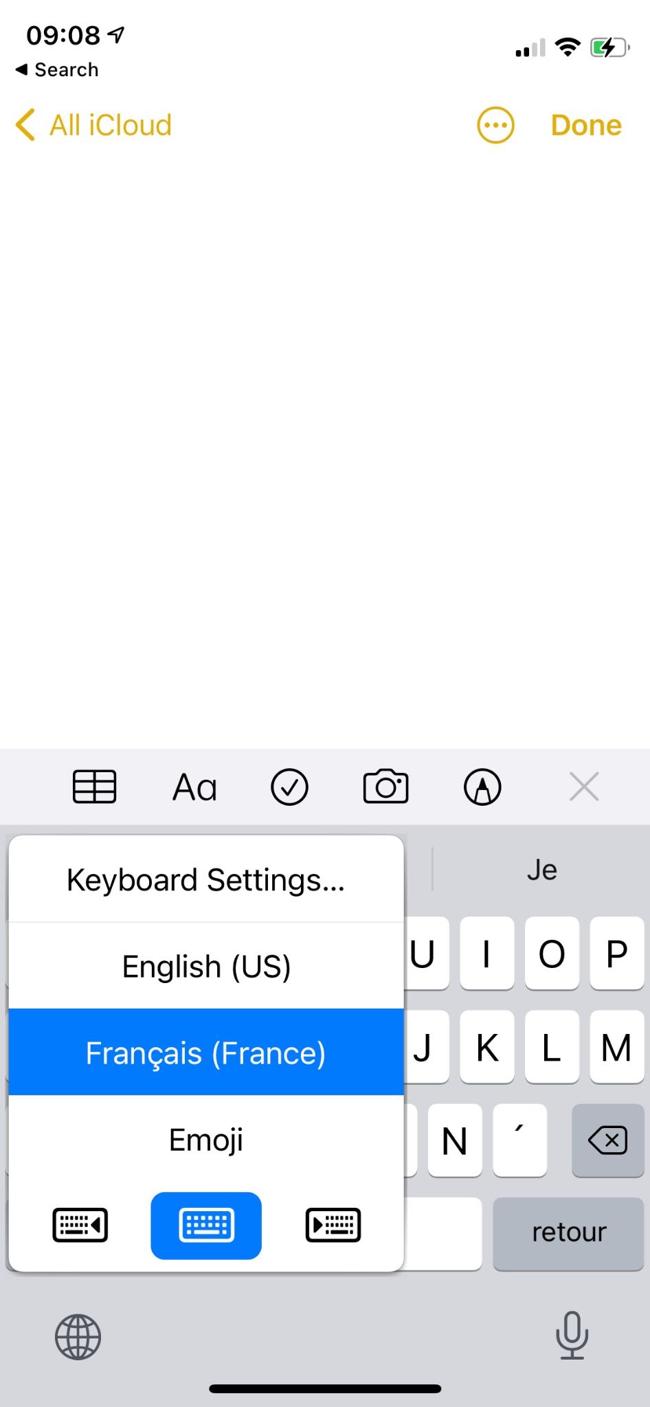 Step 8. When you’re ready to type, select the globe icon and hold it for a few seconds.